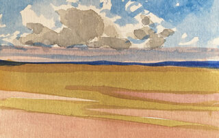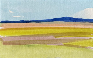 Paisaje viajado. Acuarela sobre un tarjetón reciclado. 10 x 21