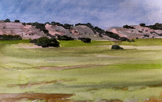 Hoya de Huesca. Acuarela sobre una tarjeta de visita reciclada.