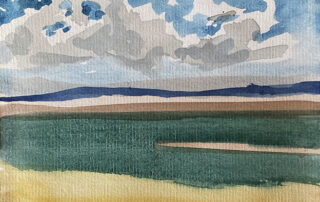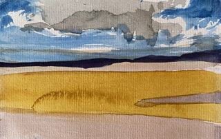 Paisaje viajado. Acuarela sobre un tarjetón reciclado 10 x 21