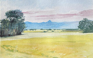 Hoya de Huesca. Acuarela sobre un tarjetón reciclado. 11 x