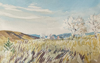 Somontano. Acuarela sobre un tarjetón reciclado. 11 x 15